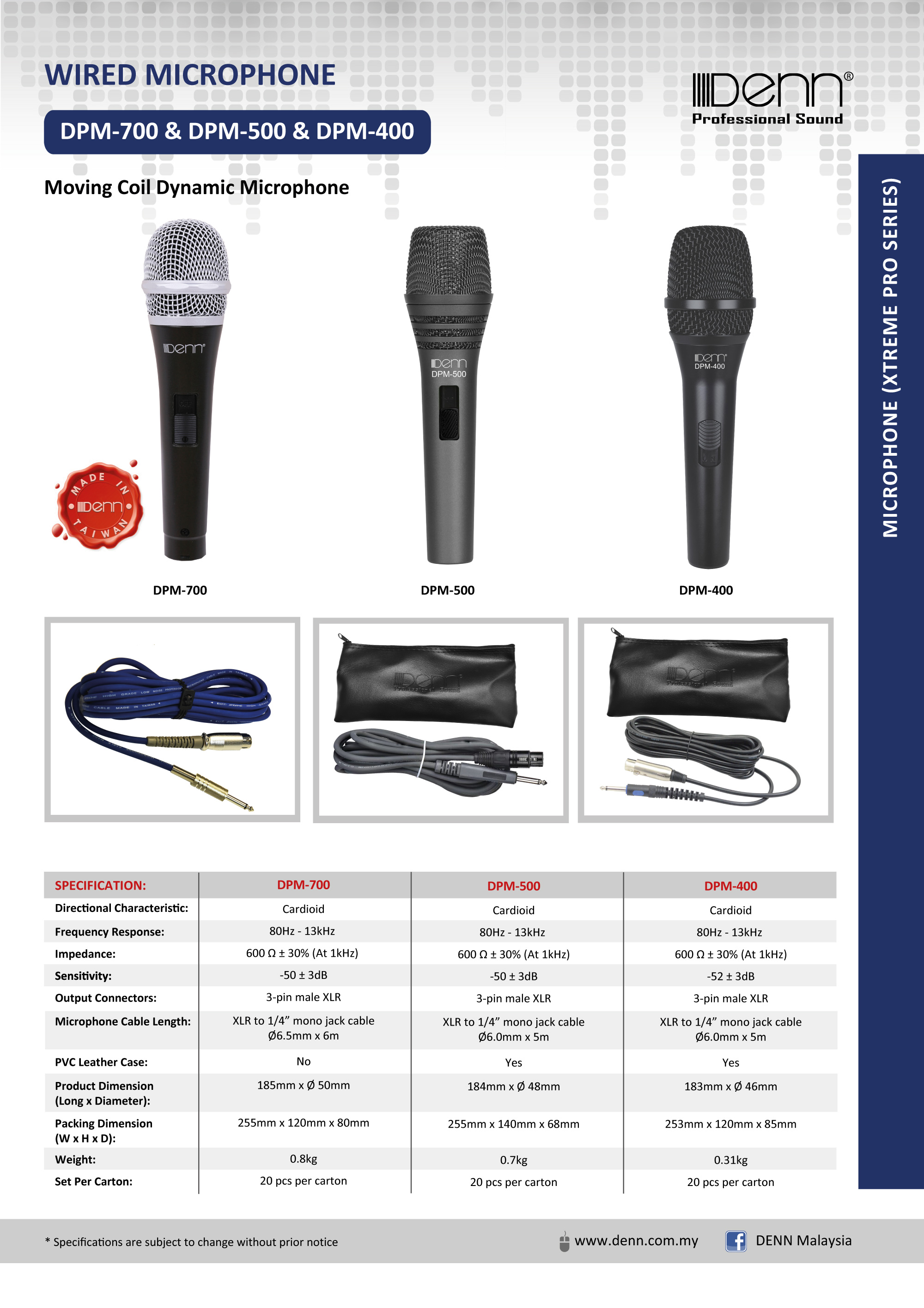 | Microphone Cable Length (Diameter x Meter) | XLR to 1/4” mono jack cable Ø 6.0mm x 5m |