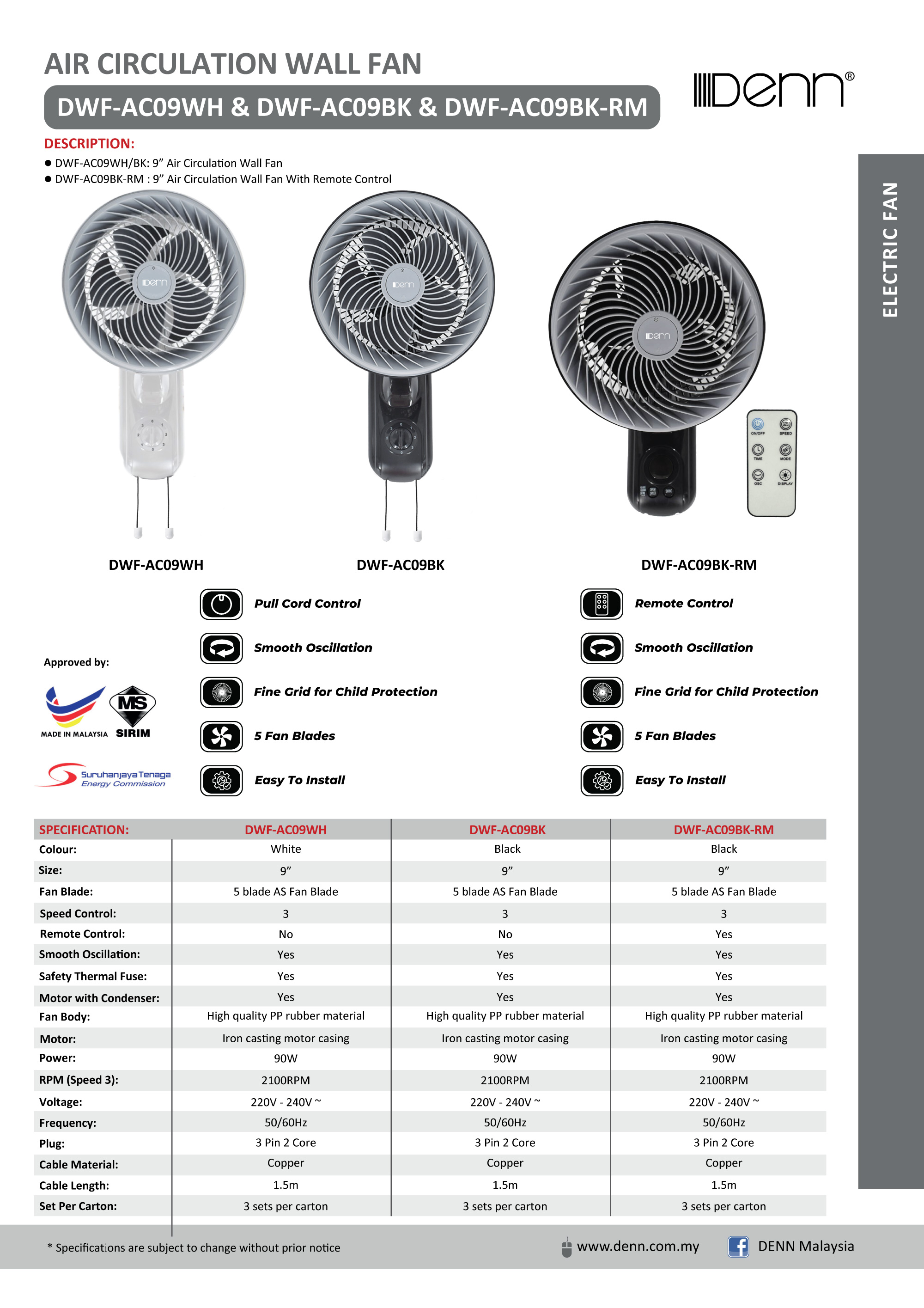 | Fan Body | High quality PP rubber material |