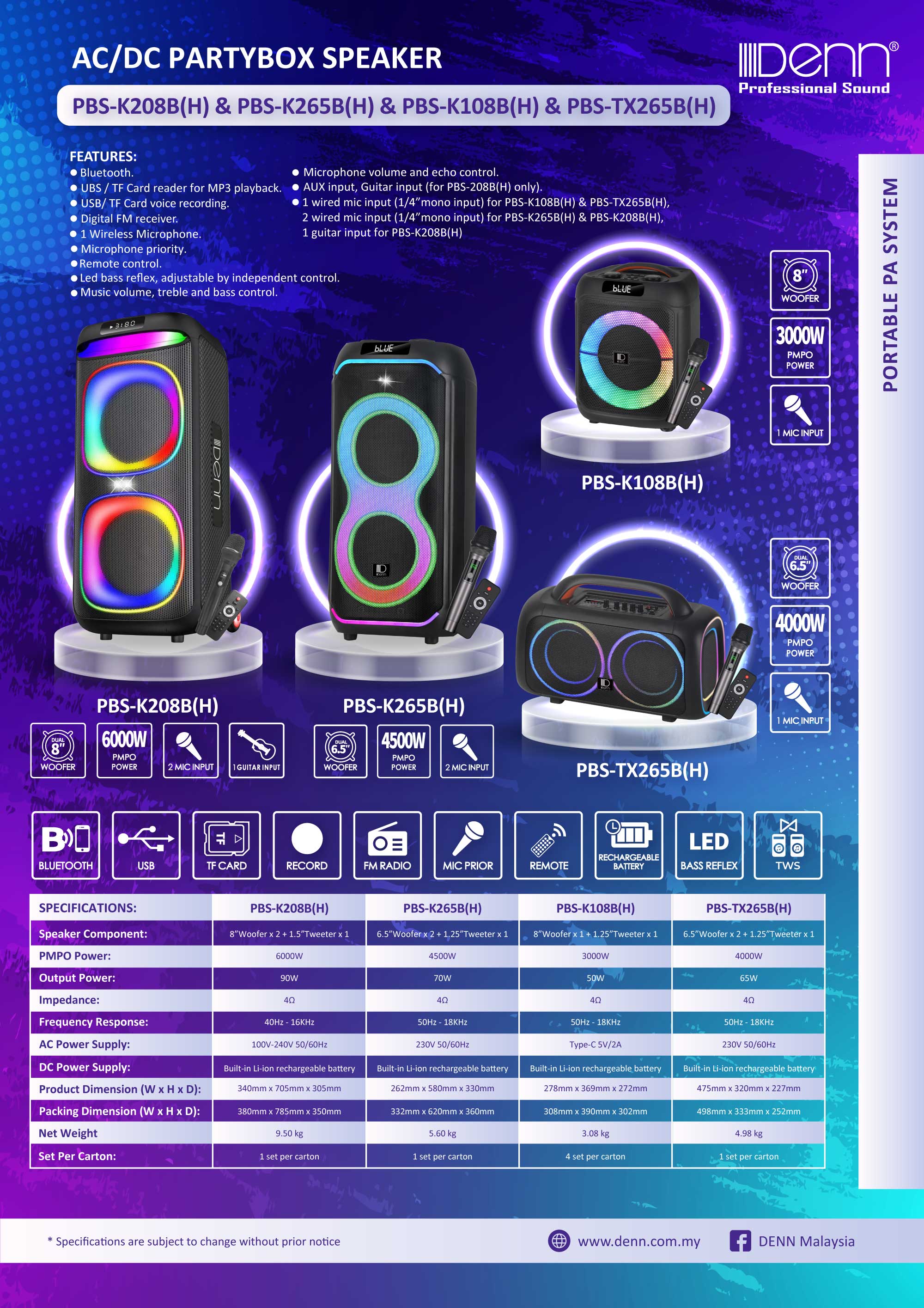 | Components | 6.5”Woofer x 2 + 1.25”Tweeter x 1 |