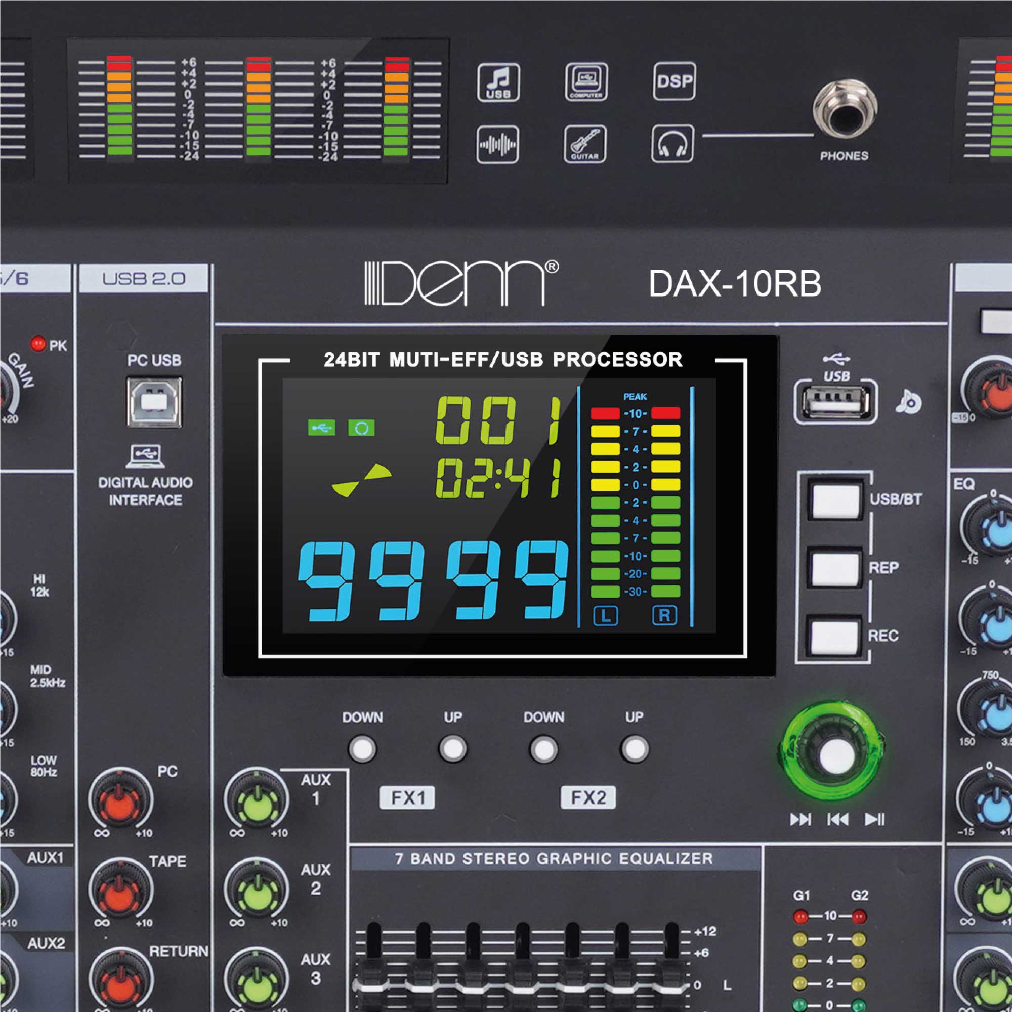 | Segment Bargraph Meters | High accuracy 10 segment bargraph meters for main L/R output |