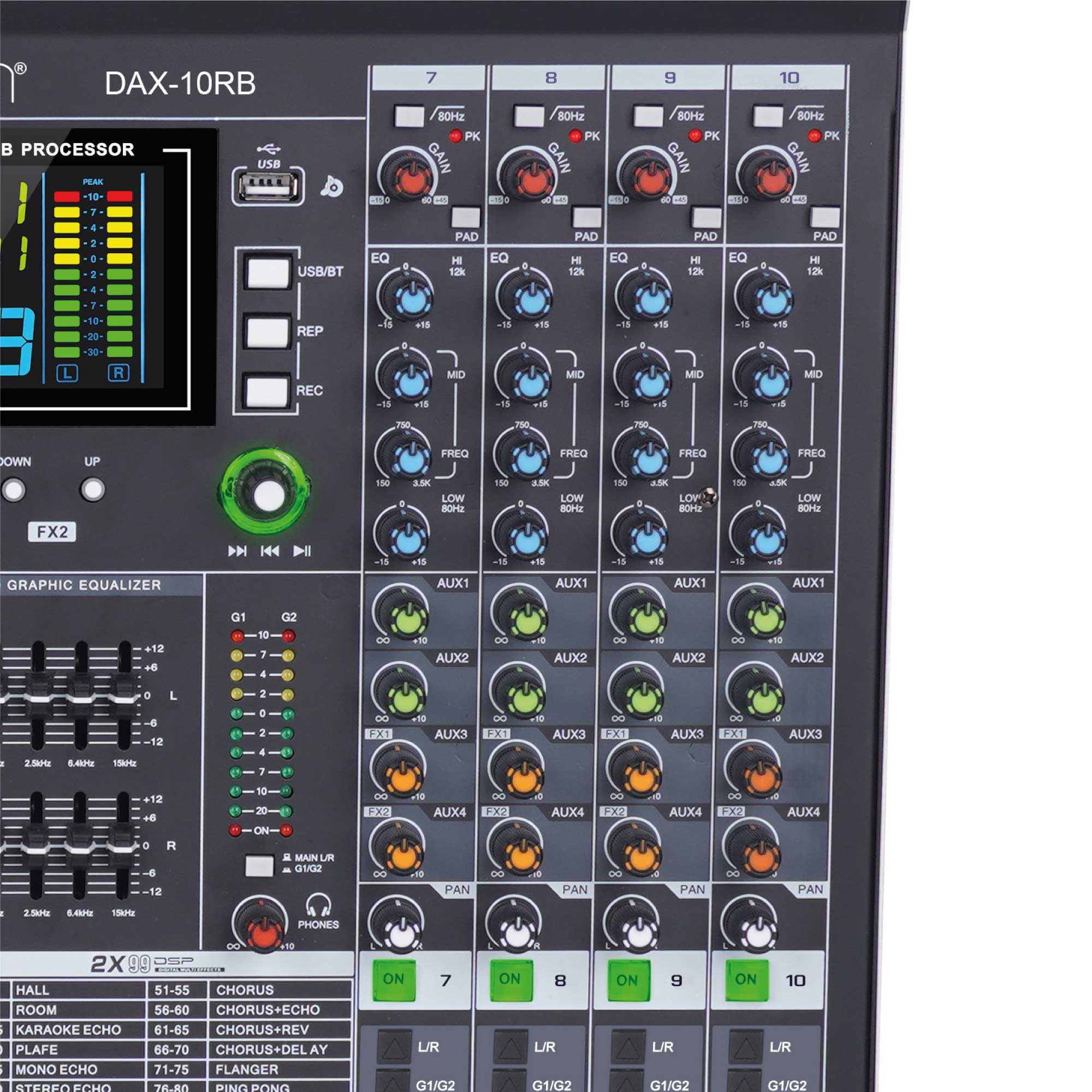 | AUX Send & AUX Return | 4 AUX send & 1 AUX return for external effects and monitoring |