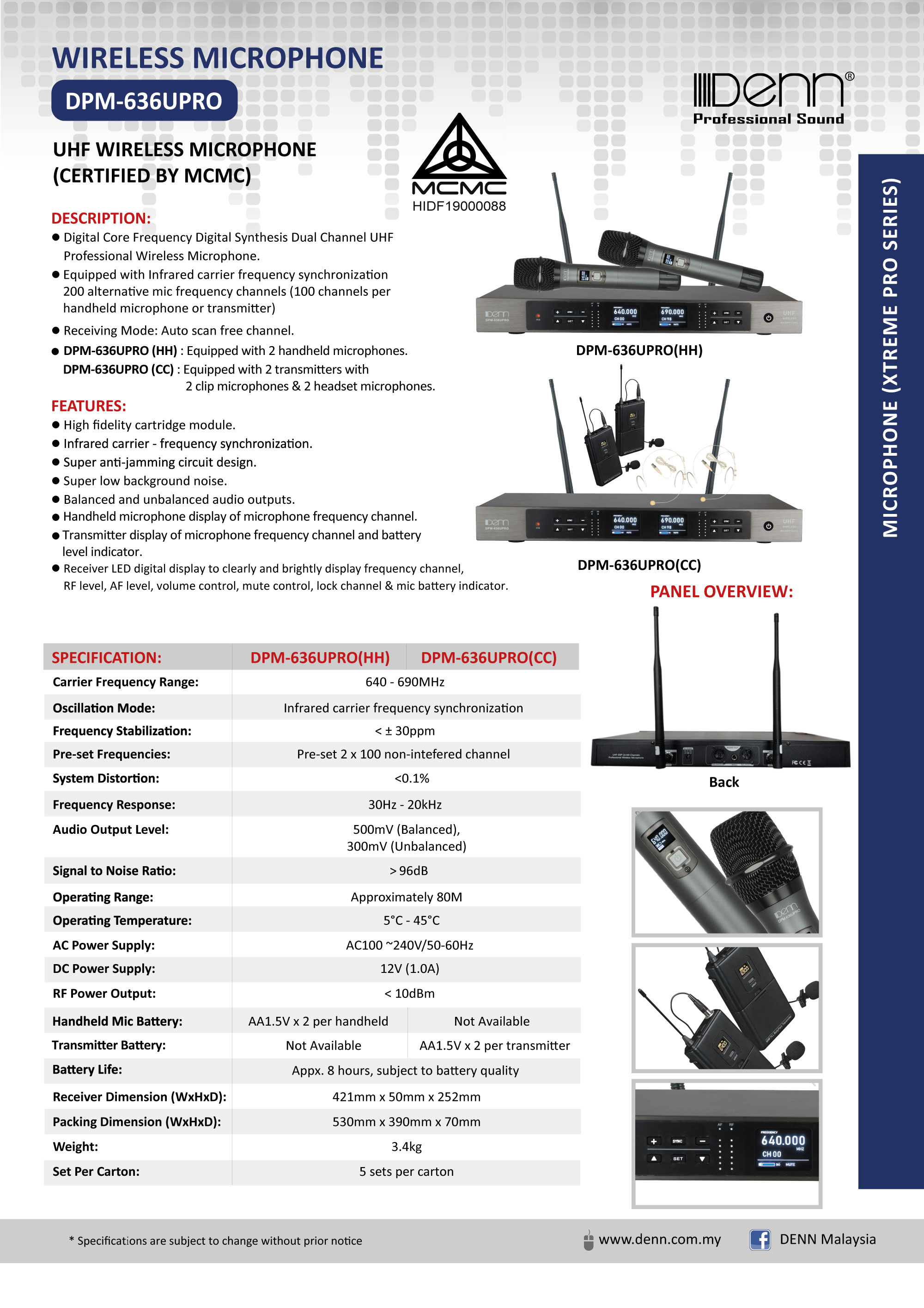 | Alternative Mic Frequency Channel | 100 channels per mic |